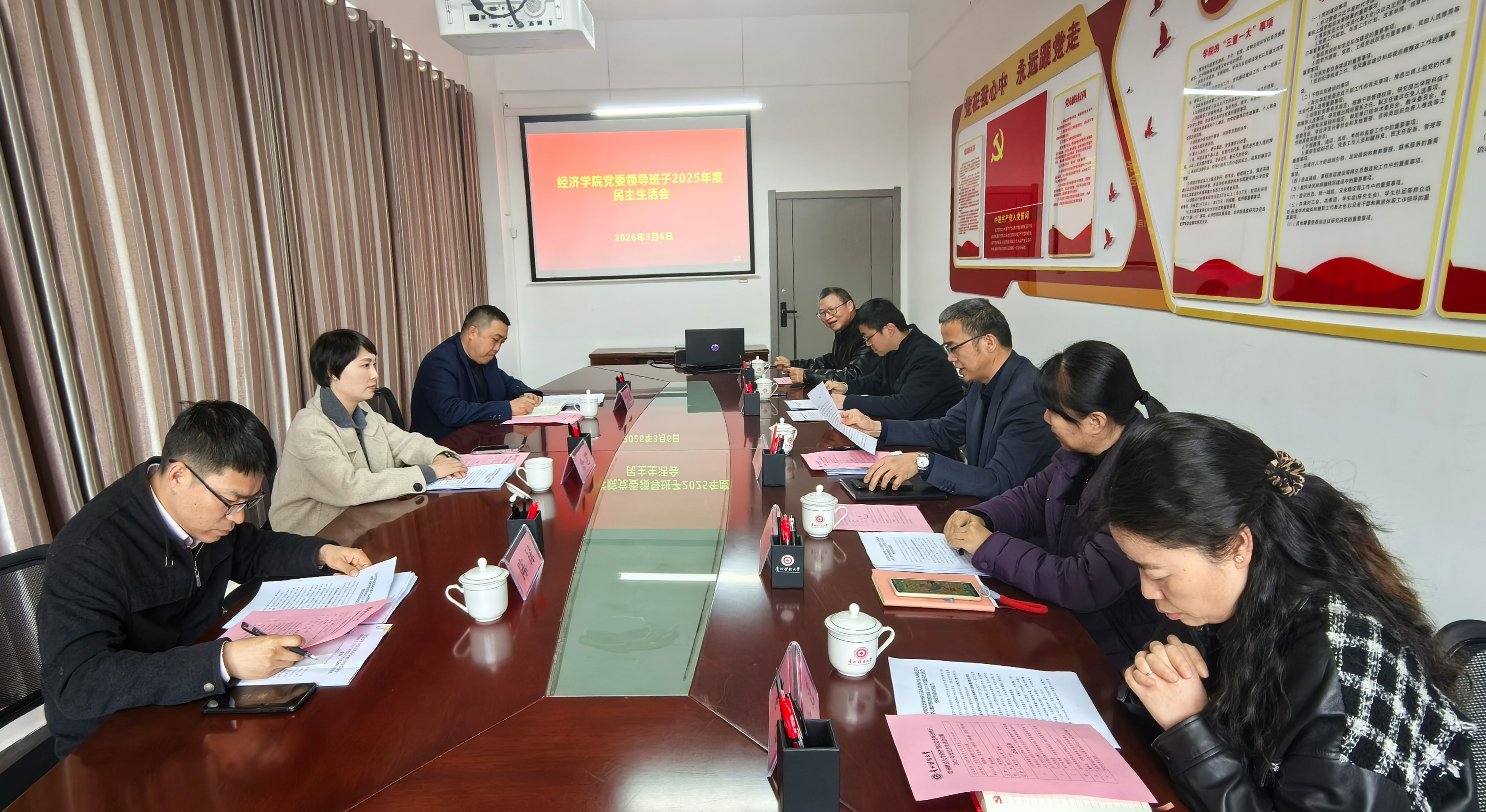 (来源:党办图文报道)3月6日,学院党委书记陈劲松在文澜楼507会议室主持召开学院党委领导班子2025年度民主生活会。副校长、党委常委徐艺出席会议,校党委第六督导组组长吴长勇、组员陈禄到会指导,学院全体处级党员领导干部参加会议。