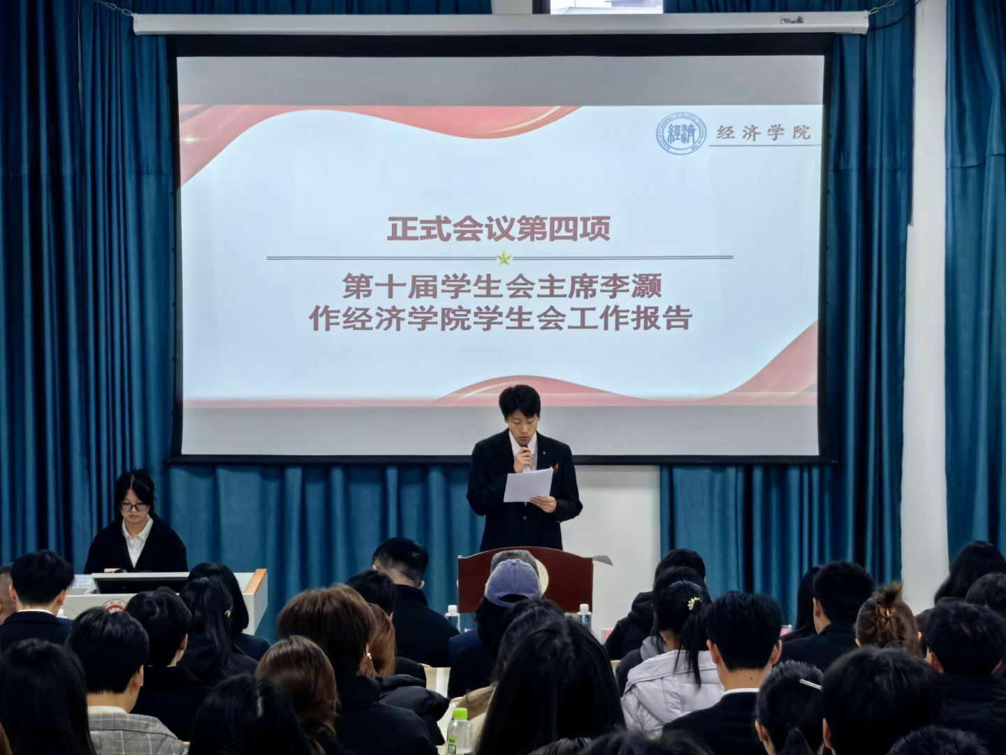 第十届学生会主席李灏与第七届研究生会主席李兴鑫分别作工作报告。汇报了过去一年在学院党委、校团委领导及院团委指导下的工作,涵盖学术、文体、实践等领域,同时指出组织协调、成员积极性等问题,并从干部能力、部门协作等方面提出改进建议。