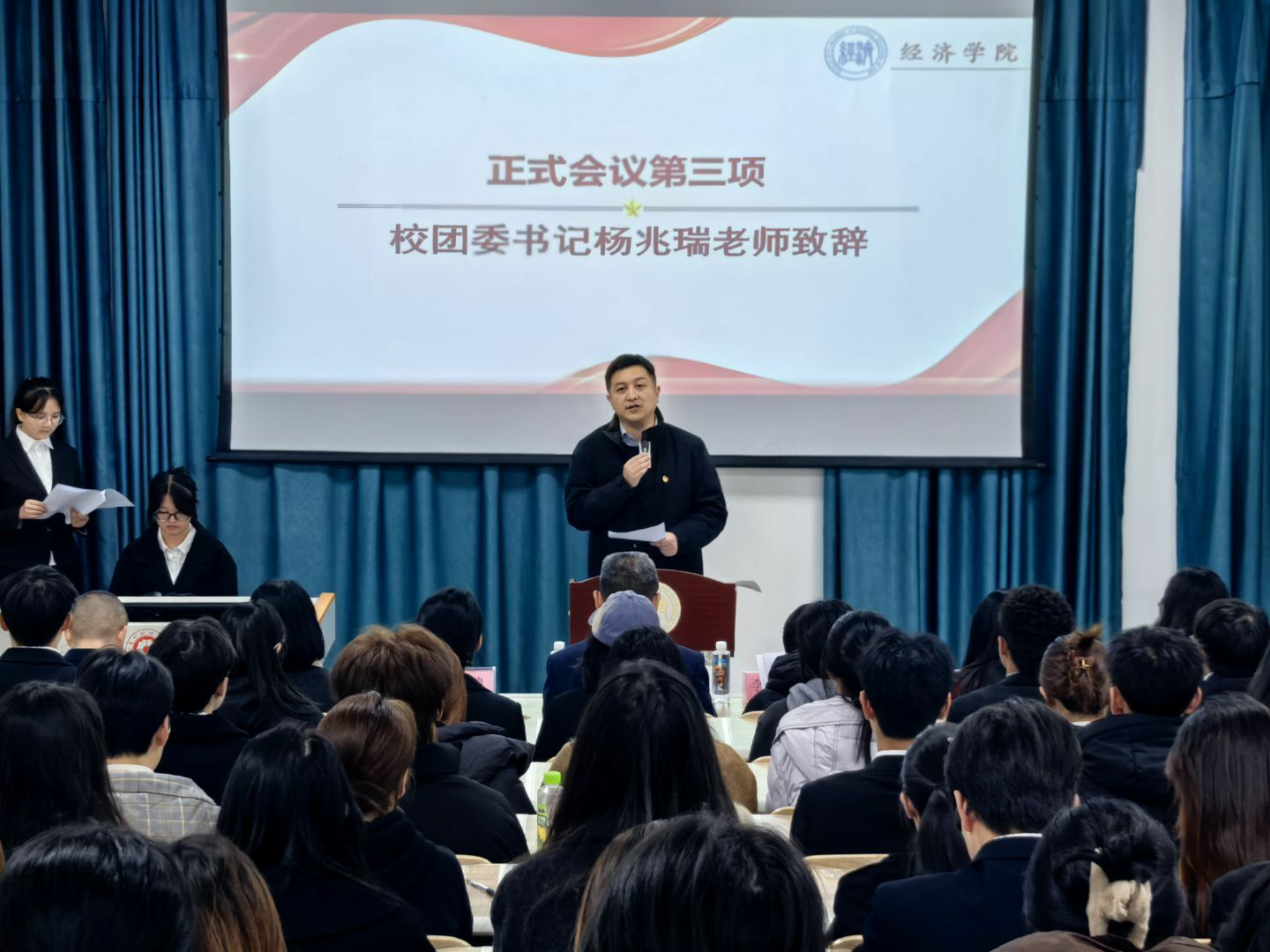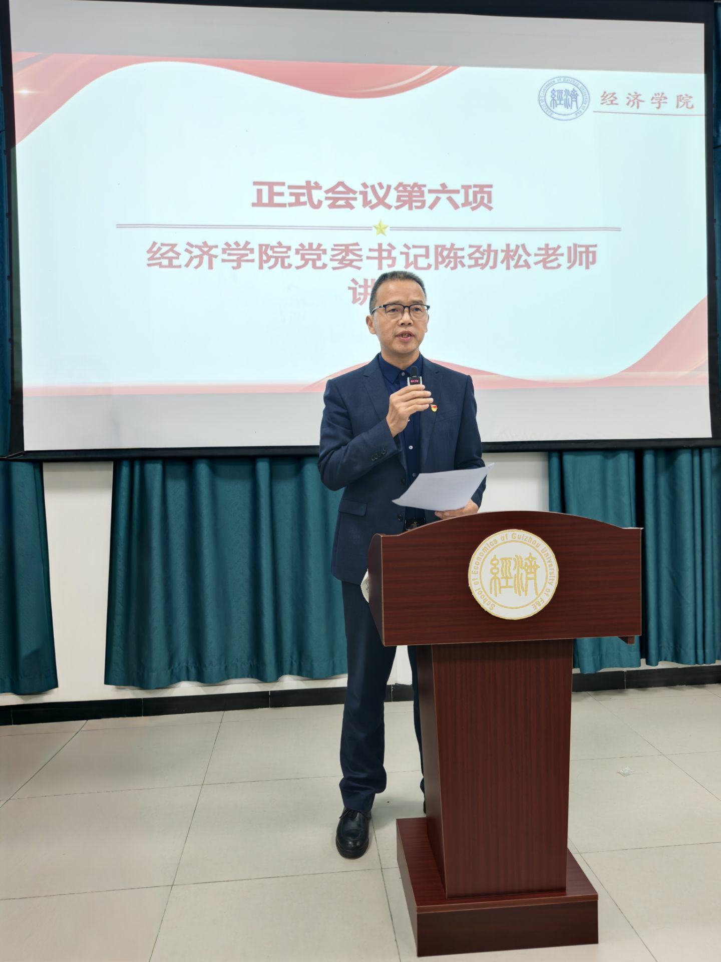 经济学院党委书记陈劲松发表讲话。他充分肯定了学生会与研究生会过去一年的工作,指出学生会与研究生会围绕学院发展目标开展的学术服务、文体活动、社会实践等工作,为学风建设、学生成长及学院发展提供了有力支撑,产生积极影响。同时,对新一年工作寄予深切期待,鼓励学生会与研究生会继续发挥作用,助力学院发展再上新台阶。
