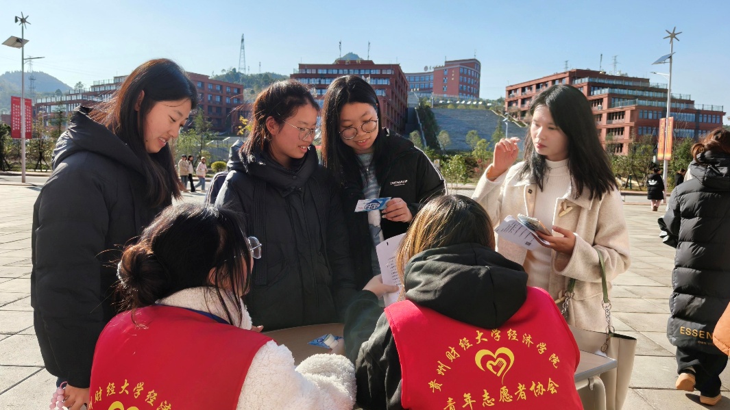 (来源:池婷 伍婷婷 图文报道)为牢固树立绿色发展理念,增强青年志愿者生态文明意识,践行绿色生活方式,进一步发挥志愿者在助力生态环保工作中的生力军作用,推动形成共建共治共享的生态文明建设新局面。在贵州河流日1+2行动项目支持下,贵州财经大学青年志愿者联合会经济学院分会于2025年11月21日在学生一站式社区开展“关爱山川河流,建设幸福河湖”——“贵州河流日1+2行动”生态环境保护系列宣传活动。
