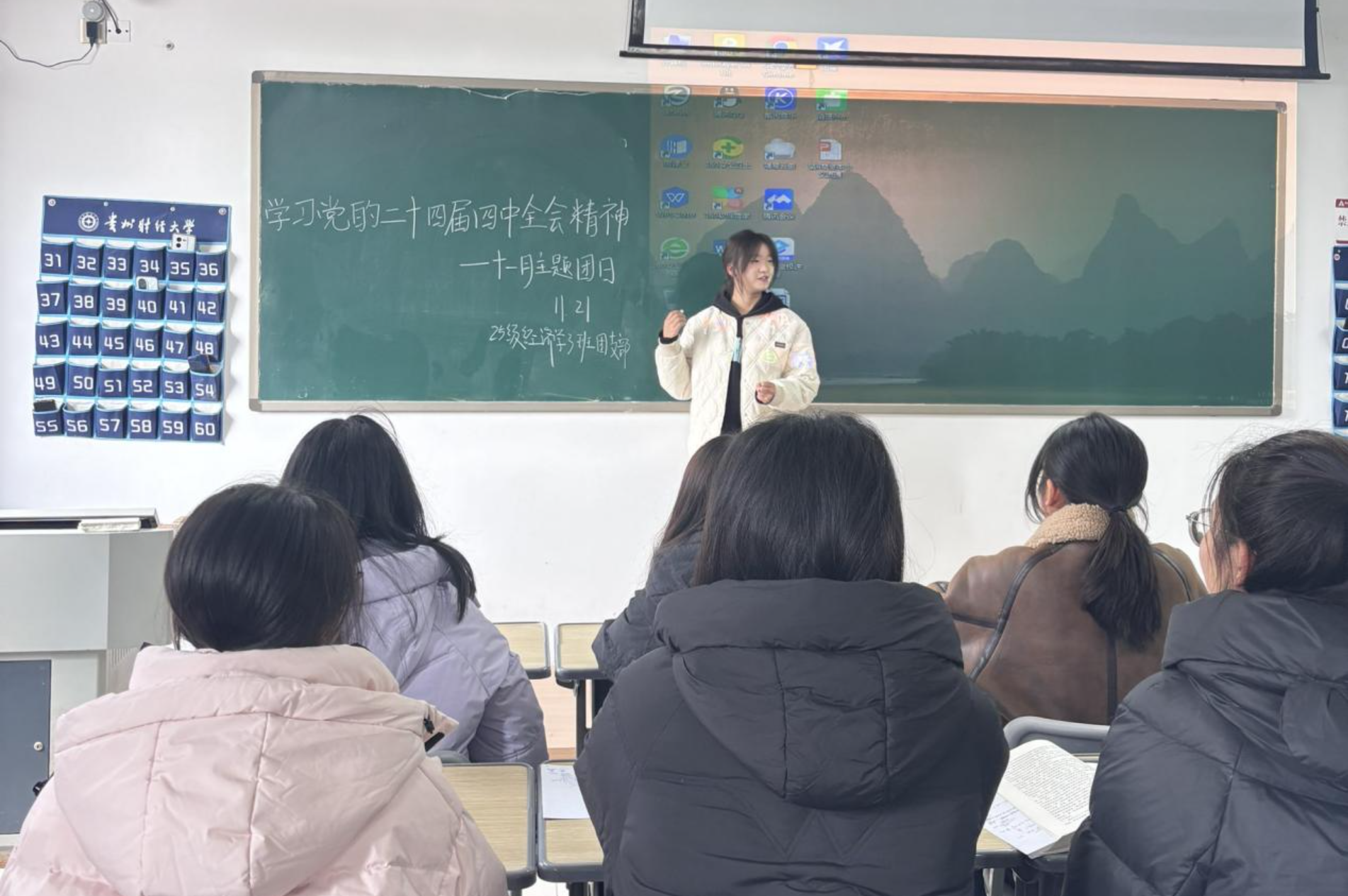 (来源:经济学院各团支部 图文报道)为持续深化青年思想引领,推动党的二十届四中全会精神在青年群体中落地生根,引导广大团员青年深刻把握推进国家治理体系和治理能力现代化的核心要义与实践要求,贵州财经大学经济学院团委组织全院各团支部集中开展“学习党的二十届四中全会精神”主题团日系列活动,以理论学习赋能青春成长,以实践担当书写时代答卷。