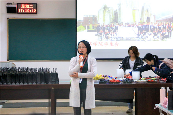 本次交流会在党委书记朱红琼的讲话中拉开了序幕,朱书记向2015级毕业生们表达了最真挚的祝福。刘岩岩博士利用风趣幽默的言语,将全场带回四年前,入校军训结束后第一周上课时的情景,熟悉的一幕幕在各位毕业生的脑海中回放着。通过刘岩岩老师PPT的播放,一张又一张初见时的笑脸,使在场的各位学子潸然泪下。接着,陈波书记对毕业生做了以文明离校为主题的讲话,使各位学子深刻的认识到毕业季时,虽然满怀兴奋和激动的心情,也要注意校园内的安全文明。彭余琴老师以“爱我校园”为主题发表了讲话,告诫各位学子虽然即将离开温暖的母校,但也要牢记师恩,铭记母校。杨显瑜老师面对即将毕业的学生们,热泪盈眶,面对自己的学生依依不舍,她送给学生们两句座右铭作为毕业礼物:人生是一场长跑;选择比努力更重要。