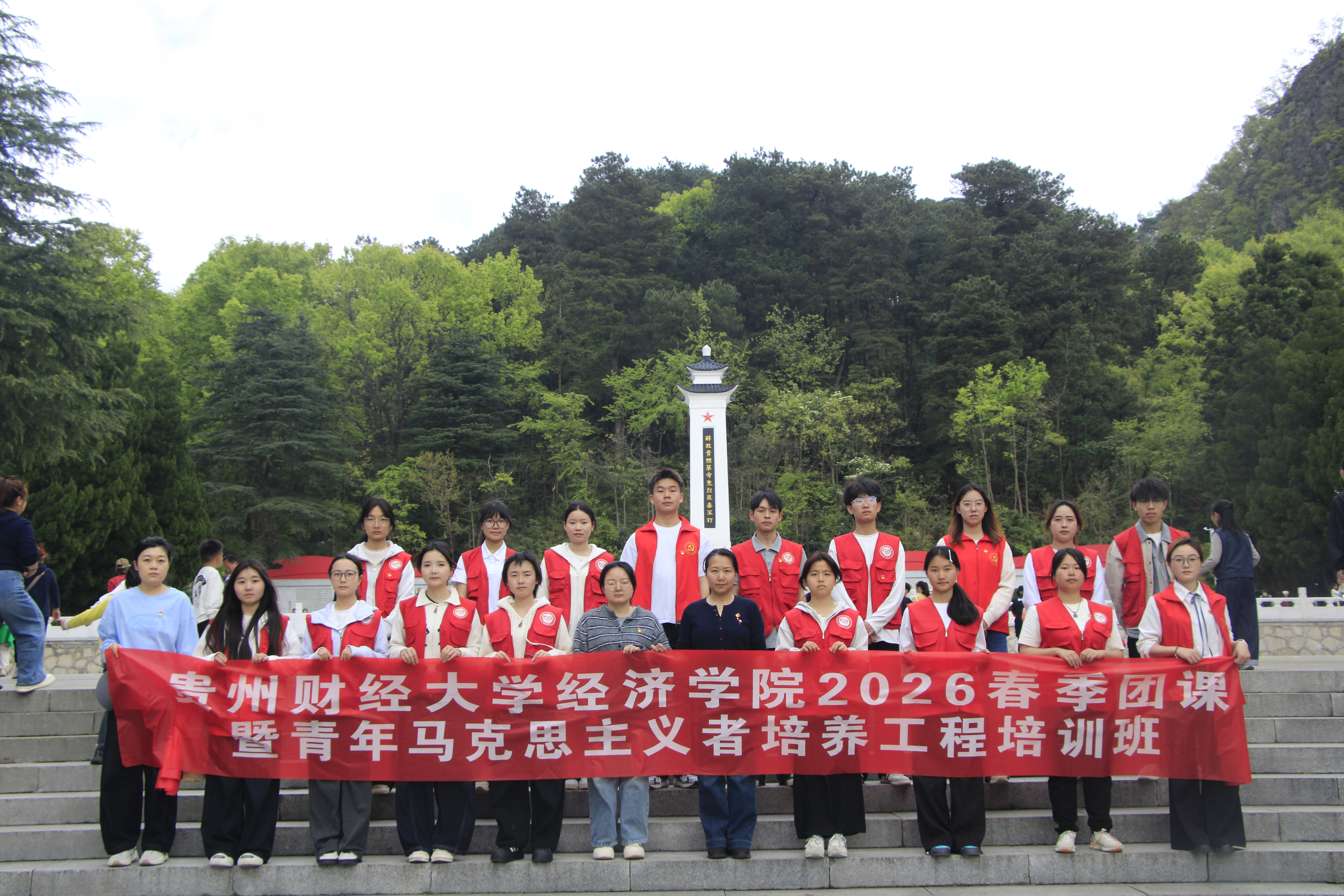 翠柏凝春,清明寄思。4月3日,贵州财经大学青年志愿者联合会经济学院分会联合学院学生会、学生党建工作中心、党员师生代表,前往黔灵山公园解放贵州革命烈士纪念碑开展清明祭英烈主题教育活动。活动以缅怀革命先烈、传承革命精神为核心,有序开展集体祭扫、默哀致敬、英烈事迹宣讲学习、敬献鲜花等系列环节,让青年学子在庄重肃穆的仪式中感悟革命先辈的崇高精神,引导大家铭记历史、缅怀先烈。