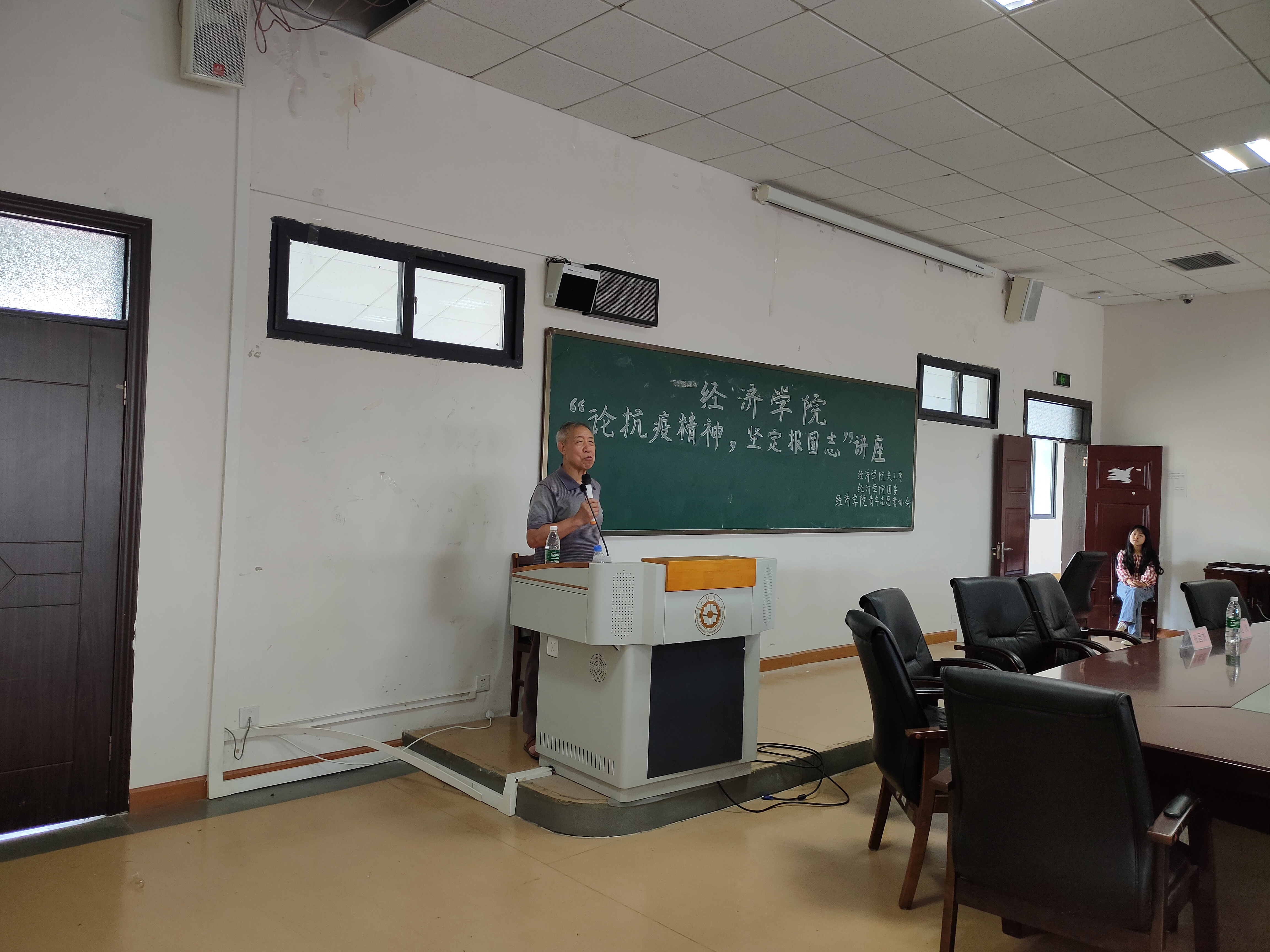2020年7月14日,经济学院关工委与学院青年志愿者协会在明德楼511会议室共同举办了题为“论抗疫精神,坚定报国志”的爱国主义主题讲座,本次讲座由校关工委张昌杰老师主讲,经济学院关工委副主任赵波与2017-2019级各班学生代表共同参加了此次活动。