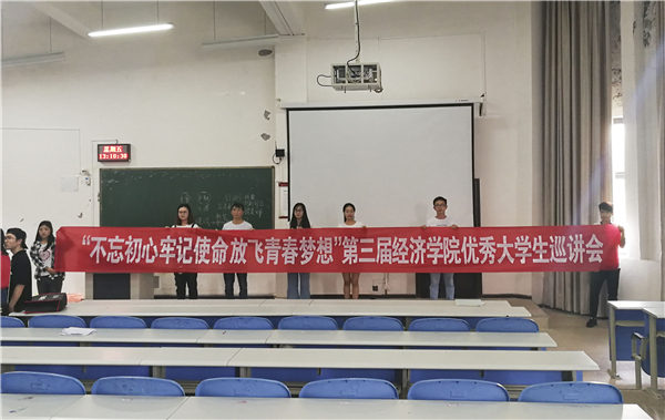 第三届“不忘初心 牢记使命 放飞青春梦想”经济学院优秀学子巡讲会,采取了自主选择方式,让大家能够自愿参加感兴趣的巡讲会。同时,通过本次巡讲会的开展,经济学院的同学们对考研、考公务员及事业单位、自主创新创业有了进一步的了解,不仅激发了同学们努力学习的兴趣,还让大家受益良多。